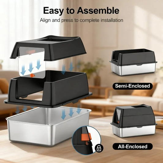 Stainless Steel Litter Box - Durable, Large-Capacity & Multi-Functional Solution